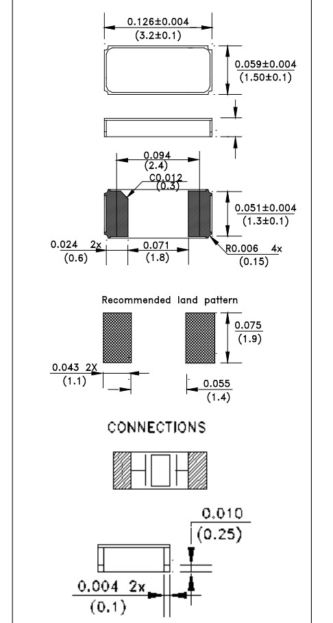 ELS07-32.768kHz-6-T,3215mm,AEL晶振,輕薄型晶振,ELS07,音叉晶體,尺寸圖