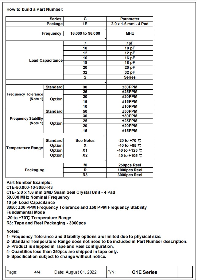 | C1E-24.576-10-1530-X-R | Aker安碁晶振 | 石英晶體 | Crystal 24.576MHz ±15ppm (Tol) ±30ppm (Stability) 10pF FUND 100Ohm Automotive 4-Pin SMD T/R |