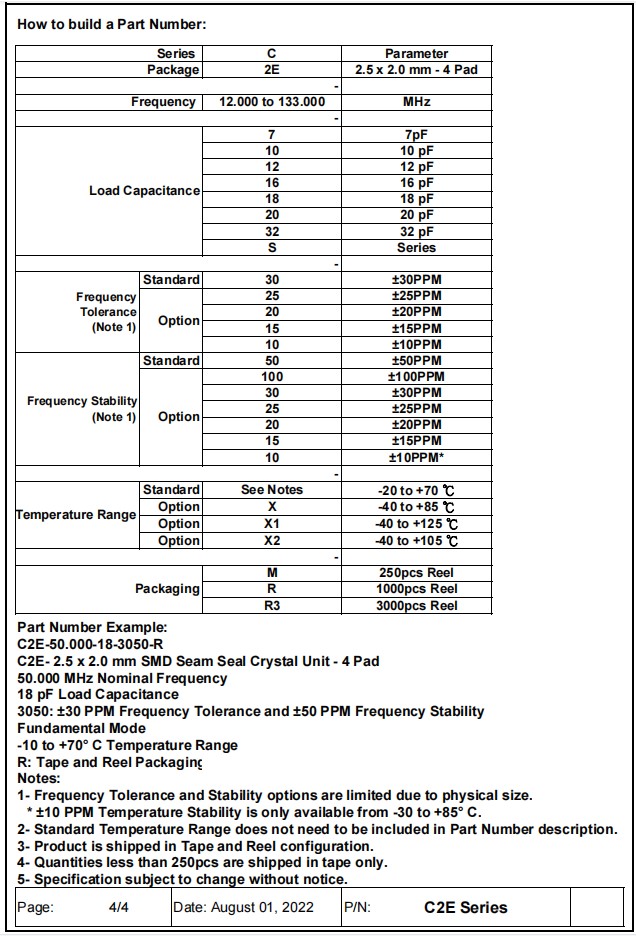 | C2E-50.000-10-1520-R | Aker晶振 | Crystal 50MHz ±15ppm (Tol) ±20ppm (Stability) 10pF FUND 70Ohm Automotive 4-Pin SMD T/R |