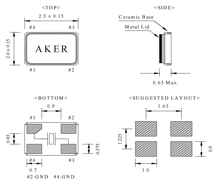 | C2E-25.000-10-1520-R | Aker晶振 | Crystal 25MHz ±15ppm (Tol) ±20ppm (Stability) 10pF FUND 100Ohm Automotive 4-Pin SMD T/R |
