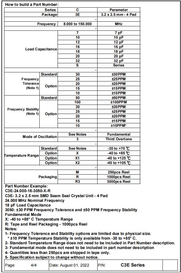 | C3E-32.000-10-1530-X-R | Aker晶振 | Crystal 32MHz ±15ppm (Tol) ±30ppm (Stability) 10pF FUND 50Ohm 4-Pin SMD T/R |