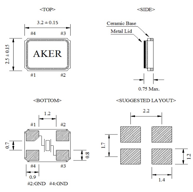 AKER晶體諧振器,C3E-27.000-10-1530-X-R,車(chē)載控制器6G晶振,C3E-18.432-10-1530-X-R,藍(lán)牙晶振,尺寸圖