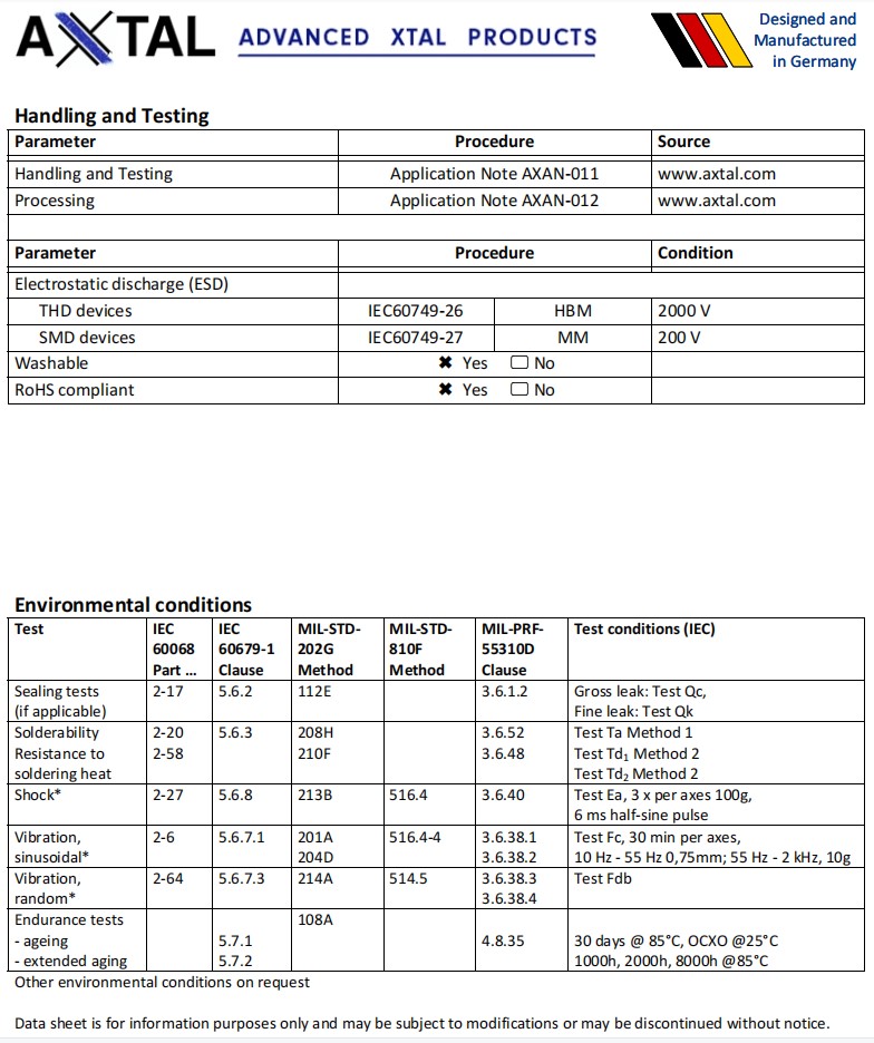 AXE7050M‐50-25‐4F-45.000MHz,7050mm,45MHz,AXTAL晶振,AXE7050M,有源晶振,德國進口晶振,AXTAL晶振,型號:AXE7050M,編碼為:AXE7050M-50-25-4F-45.000MHz貼片晶振,電壓:5.0V,頻率穩(wěn)定性:±25ppm,工作溫度范圍:-40℃至+85℃,頻率為:45.000MHz,小體積晶振尺寸:7.0x5.0mm封裝,石英晶振,四腳貼片晶振,有源晶振,石英晶體振蕩器,SMD晶振,SPXO振蕩器。具有超小型,輕薄型,高性能,高品質,高質量,耐熱及耐環(huán)境特點。被廣泛應用于:移動通訊設備晶振,無線藍牙晶振,物聯(lián)網(wǎng)晶振,航空電子晶振,汽車電子晶振,導航儀等應用。