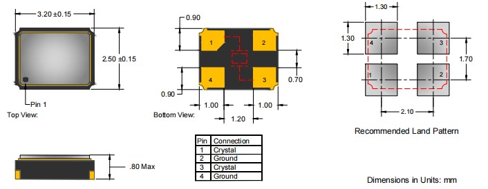 AE-135-A-2-4085-2-30-28M0000,3225mm,Anderson晶振,AE135,藍牙晶振,尺寸圖