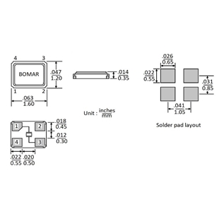 產品介紹: Bomar博馬爾晶振,BC63EFI120-30.000000,智能手機6G晶振,BC63AED120-45.000000,超小型晶振,美國進口晶振,Bomar博馬爾晶振,型號:BC63,編碼為:BC63EFI120-30.000000,頻率為:30.000MHz,小體積晶振尺寸:1.6x1.2x...