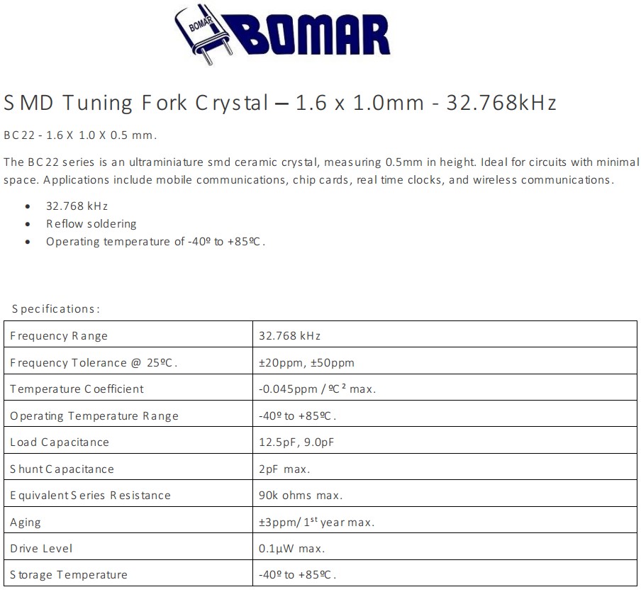 BC22CFD112.5-32.768K,1610mm,Bomar超小型晶振,BC22,智能穿戴設備晶振,參數表