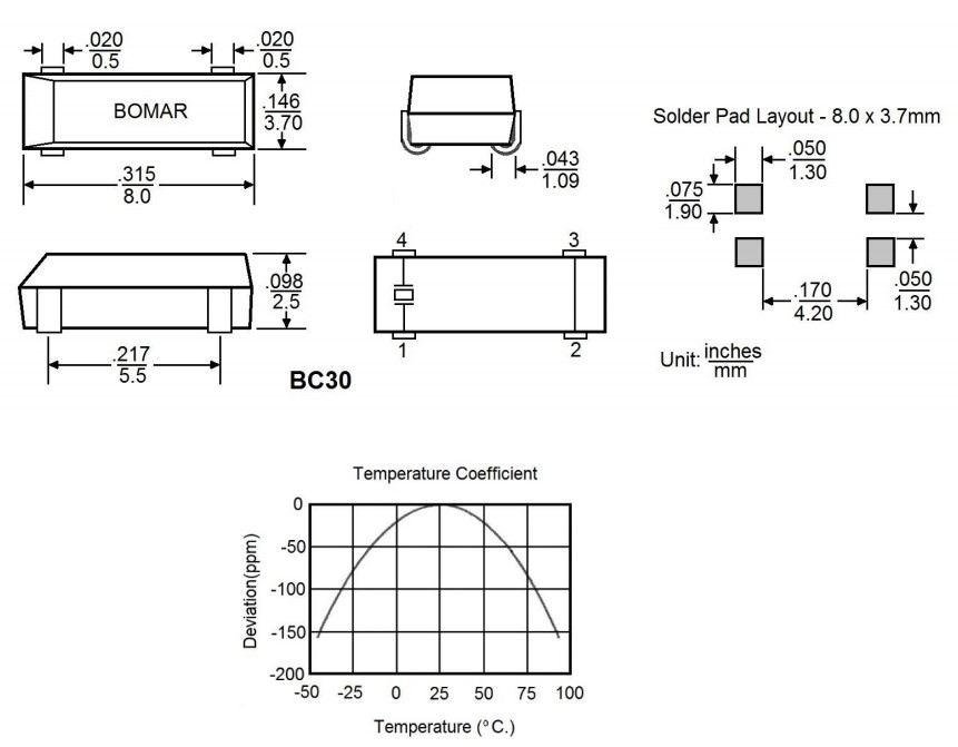 32.768KHz,BC30CCD112.5-32.768K,8038mm,Bomar品牌,BC30,實(shí)時(shí)時(shí)鐘晶振,參數(shù)表