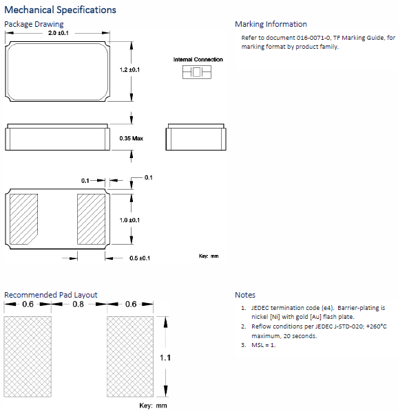 CTS西迪斯TF20超小型晶振,TF203P32K7680R無線模塊晶振,TF205P32K7680,可穿戴設(shè)備晶振,尺寸圖