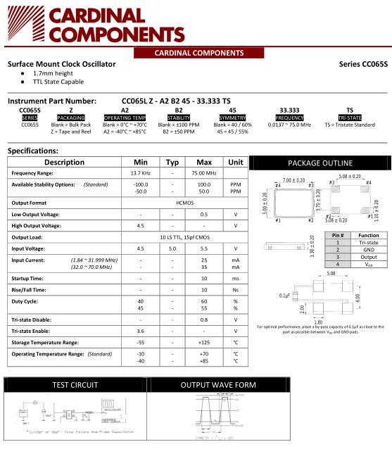 | Available Stability Options: (Standard) | -100 | - | 100 | PPM |