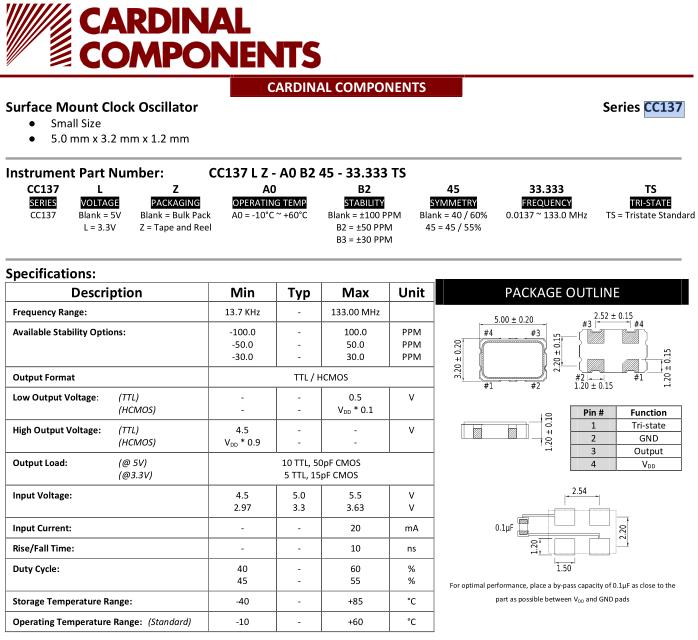 Cardinal晶振,CC137晶振,CC137LZ-A0B245-16.000TS晶振,5032mm體積的石英晶體振蕩器,有源晶振,該產品可驅動2.5V的溫補晶振,壓控晶振,VC-TCXO晶體振蕩器產品,電源電壓的低電耗型,編帶包裝方式,可對應自動高速貼片機自動焊接,及IR回流焊接(無鉛對應),為無鉛產品,超小型,質地輕.產品被廣泛應用到集成電路,程控交換系統,無線發射基站.
