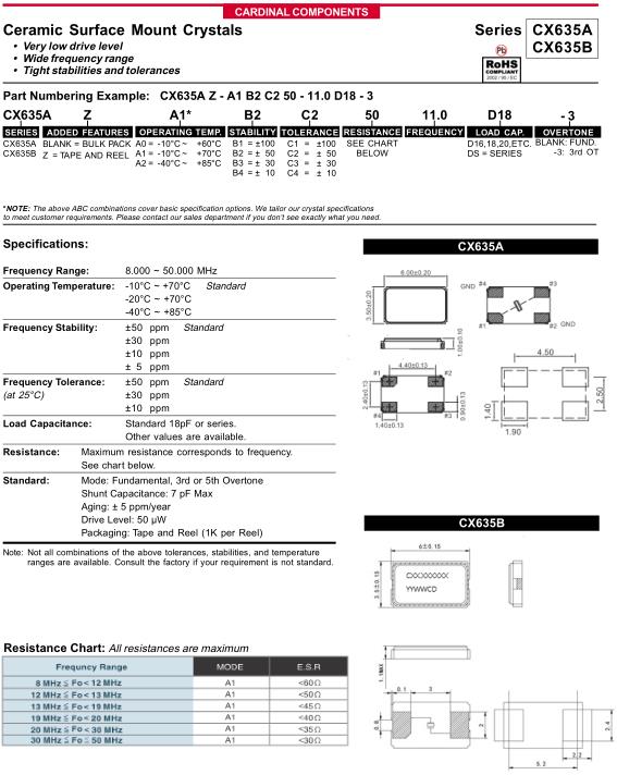 Cardinal晶振,CX635A晶振,CX635AZ-A1B2C250-11.0D183晶振,貼片晶振本身體積小,超薄型石英晶體振蕩器,特別適用于有目前高速發(fā)展的高端電子數(shù)碼產(chǎn)品,因為晶振本身小型化需求的市場領(lǐng)域,小型,薄型是對應(yīng)陶瓷振蕩器(偏差大)和普通的石英晶體振蕩器(偏差小)的中間領(lǐng)域的一種性價比較出色的產(chǎn)品.產(chǎn)品廣泛用于筆記本電腦,無線電話,衛(wèi)星導(dǎo)航SSD,USB,Blu-ray等用途,符合無鉛焊接的高溫回流焊曲線特性.