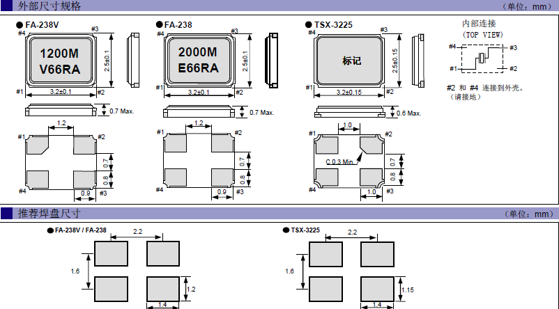 MPU時鐘專用晶振FA-238,Q22FA23800001,3225mm,12pF,20MHz,±50ppm,尺寸圖