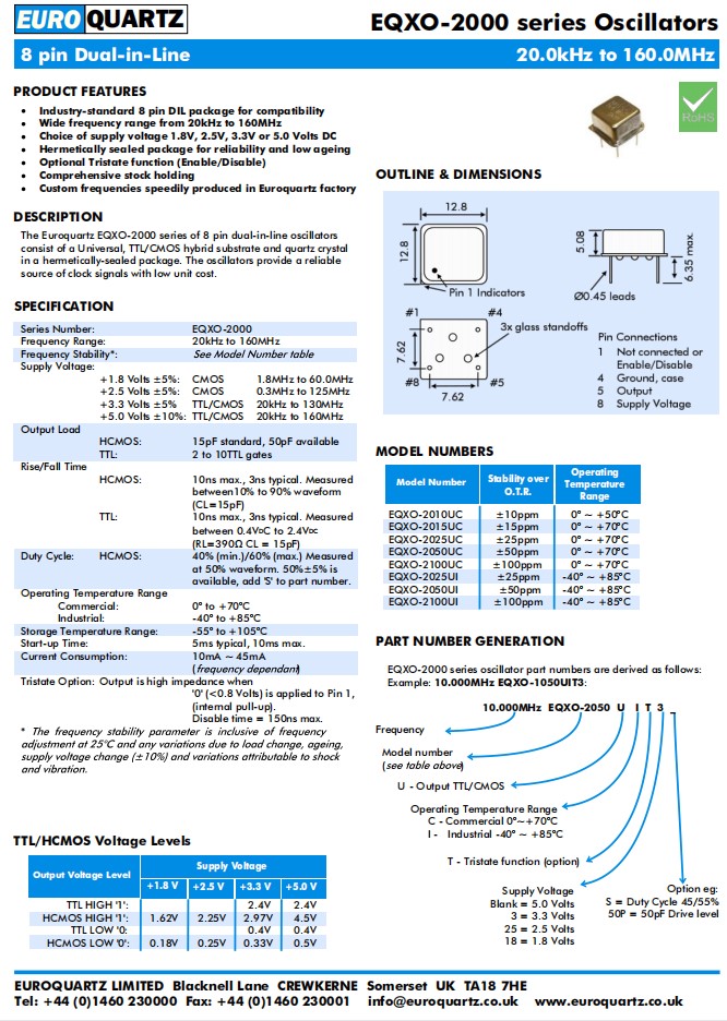 英國EUROQUARTZ有源晶振,10.000MHzEQXO-2050UIT3S,6G網(wǎng)絡(luò)設(shè)備晶振,參數(shù)表