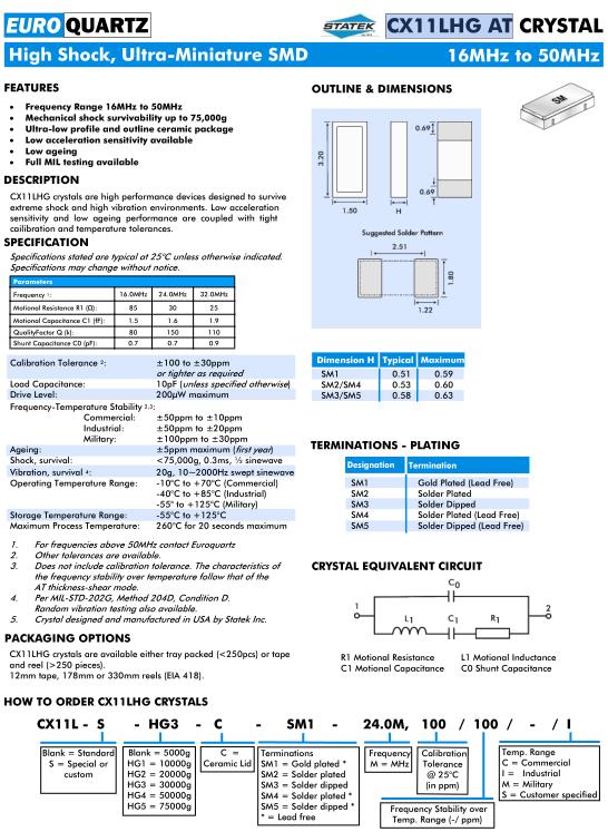 Euroquartz晶振為一家具有專業晶振知識的跨國獨立歐洲石英晶振公司.Euroquartz Crystal公司成立于1982年,1987年成功收購三戰期間形成的英國石英晶體制.Euroquartz晶振,CX11LHGAT晶振,CX11LSHG3CSM1-24.0M,100/100/I晶振.