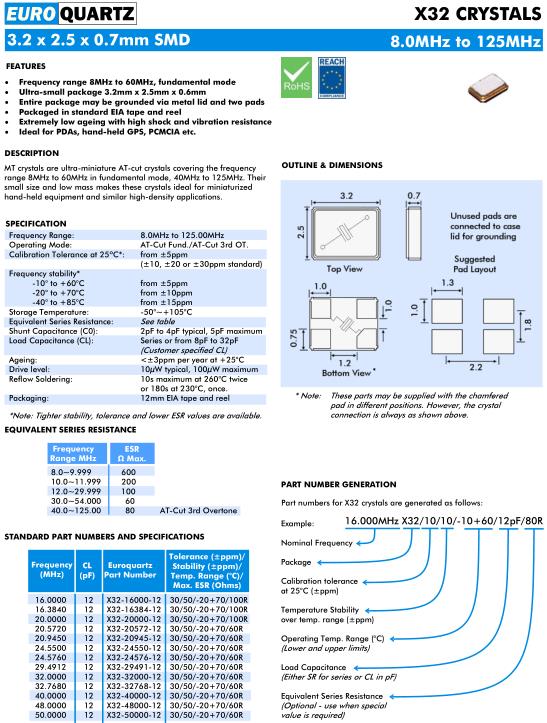 | Load Capacitance (CL): | Series or from 8pF to 32pF | |