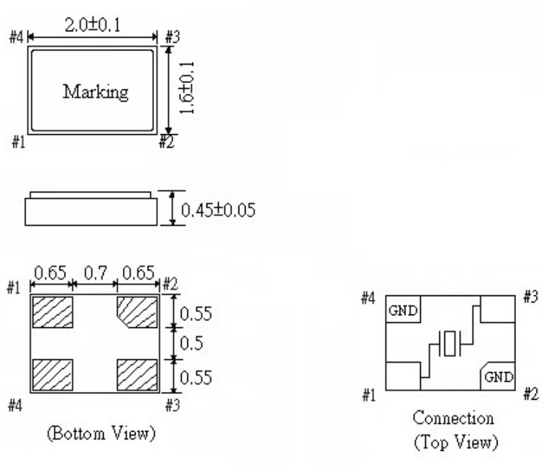 F2016A-30-50‐D‐30‐F‐26.000MHz,2016mm,FCD-Tech超小型晶振,F2016A,智能穿戴設(shè)備晶振,尺寸圖