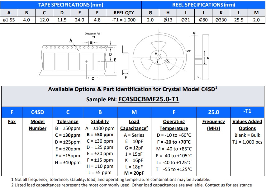 | FC4SDCBGF24.0-T1 | Fox晶振 | FC4SD | 24 MHz | ±50ppm |