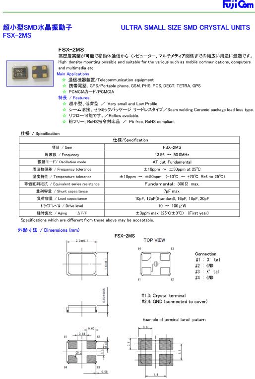 Fujicom晶振,FSX-2M晶振,2520mm無源晶振,小型貼片石英晶振,外觀尺寸具有薄型表面貼片型石英晶體振蕩器,特別適用于有小型化要求的市場領(lǐng)域,比如智能手機(jī),無線藍(lán)牙,平板電腦等電子數(shù)碼產(chǎn)品.晶振本身超小型,薄型,重量輕,晶體具有優(yōu)良的耐環(huán)境特性,如耐熱性,耐沖擊性,在辦公自動化,家電相關(guān)電器領(lǐng)域及Bluetooth,WirelessLAN等短距離無線通信領(lǐng)域可發(fā)揮優(yōu)良的電氣特性,滿足無鉛焊接的回流溫度曲線要求.