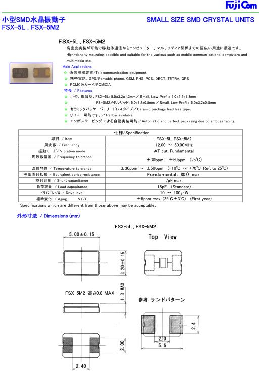 Fujicom晶振,FSX-5L晶振,5032mm晶振,小型表面貼片晶振型,是標準的石英晶體振蕩器,適用于寬溫范圍的電子數碼產品,家電電器及MP3,MP4,播放器,單片機等領域.可對應8.000MHz以上的頻率,在電子數碼產品,以及家電相關電器領域里面發揮優良的電氣特性,滿足無鉛焊接的回流溫度曲線要求..