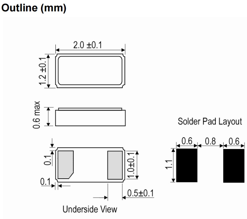 LFXTAL050789REEL,32.768KHz,2012mm,IQD智能手機晶振,IQXC-25,石英晶體諧振器,尺寸圖