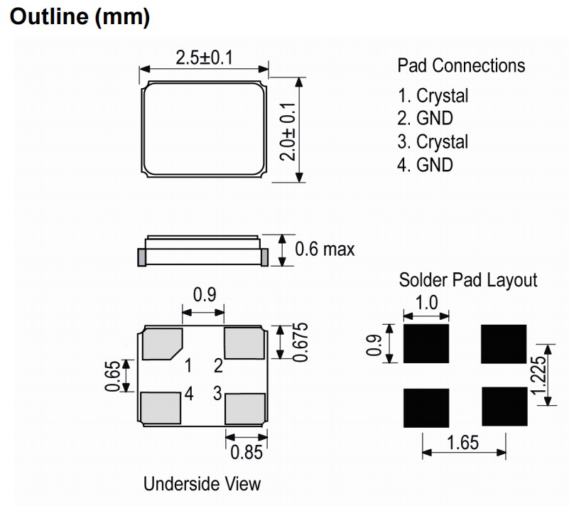 IQD無源晶振CFPX-218,LFXTAL069404REEL,醫(yī)療設(shè)備6G晶振,LFXTAL078207REEL,石英晶體諧振器,尺寸圖