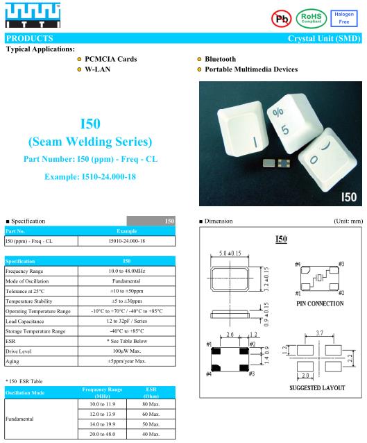 ITTI晶振,I50晶振,I510-24.000-18晶振,小型表面貼片晶振型,是標(biāo)準(zhǔn)的石英晶體振蕩器,適用于寬溫范圍的電子數(shù)碼產(chǎn)品,家電電器及MP3,MP4,播放器,單片機(jī)等領(lǐng)域.可對應(yīng)8.000MHz以上的頻率,在電子數(shù)碼產(chǎn)品,以及家電相關(guān)電器領(lǐng)域里面發(fā)揮優(yōu)良的電氣特性,滿足無鉛焊接的回流溫度曲線要求.