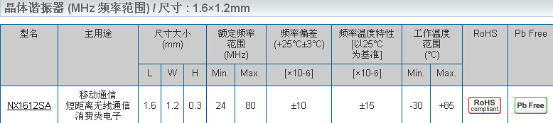 | 頻率公差 | Max. ±25 ×10-6 | Max. ±50 ×10-6 | Max. ±100 ×10-6 | |
