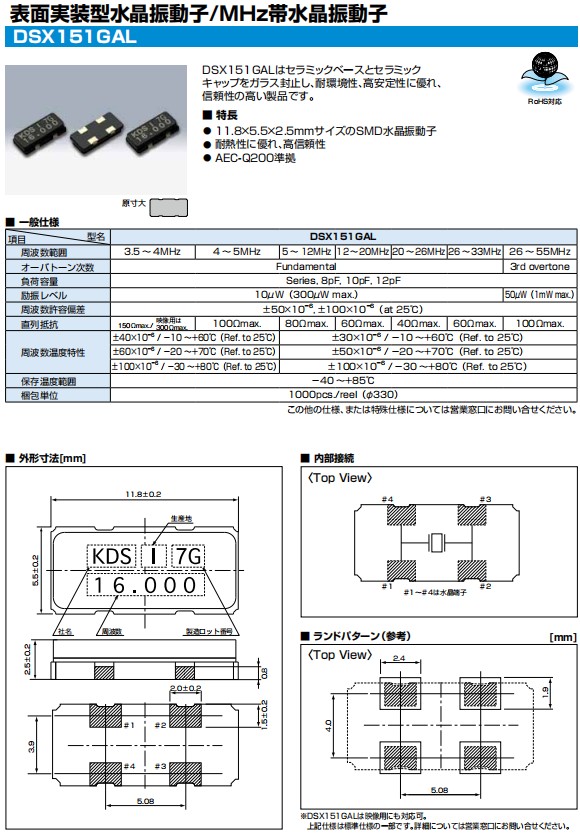 KDS高可靠性晶振,DSX151GAL無源晶振,1CW08000EK3B安防設備晶振,SMD晶振,車載電子晶振