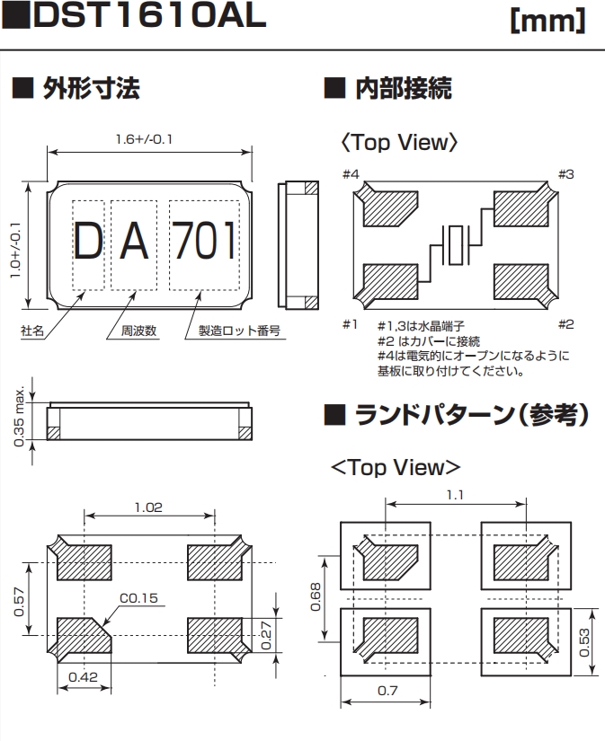 DST1610AL可穿戴設(shè)備晶振,KDS諧振器,1TJL070DR1A0009 尺寸圖