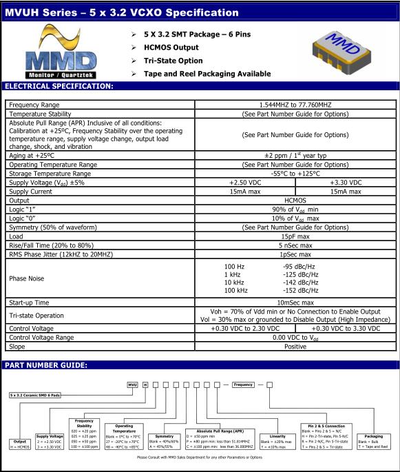 MMDCOMP晶振,MVUH晶振,MVUH-202048ADYR-16.000M-T晶振,5032mm體積的石英晶體振蕩器,有源晶振,該產(chǎn)品可驅(qū)動(dòng)2.5V的溫補(bǔ)晶振,壓控晶振,VC-TCXO晶體振蕩器產(chǎn)品,電源電壓的低電耗型,編帶包裝方式,可對(duì)應(yīng)自動(dòng)高速貼片機(jī)自動(dòng)焊接,及IR回流焊接(無(wú)鉛對(duì)應(yīng)),為無(wú)鉛產(chǎn)品,超小型,質(zhì)地輕.產(chǎn)品被廣泛應(yīng)用到集成電路,程控交換系統(tǒng),無(wú)線發(fā)射基站.