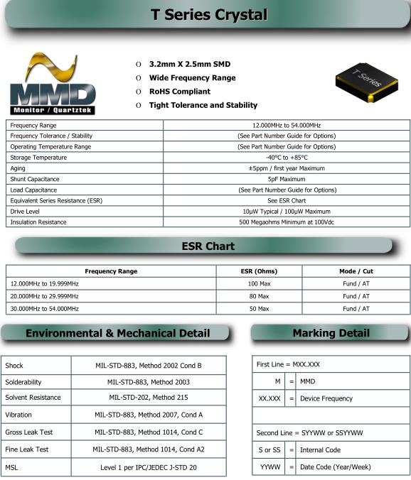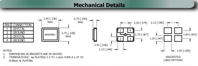 | Drive Level | 10µW Typical / 100µW Maximum |