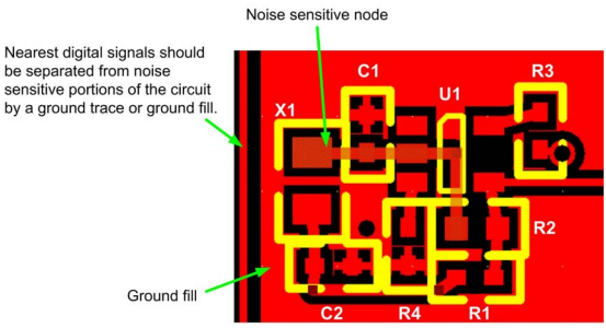 圖3.示例布局顯示使用地面填充來最小化噪聲