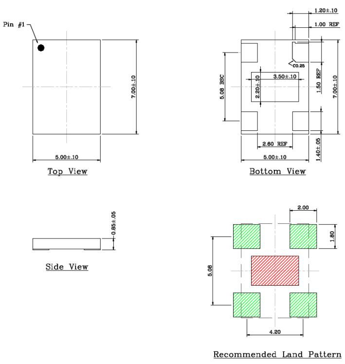 DSC1004AE2-050.0000T,7050mm,Microchip晶體振蕩器,工業應用晶振,尺寸圖