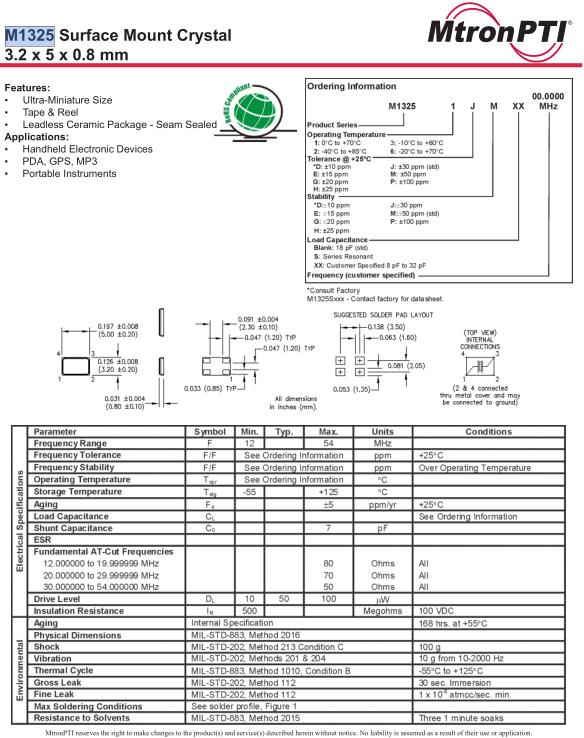MtronPTI晶振,M1325晶振,M13251JMXX26.0000MHz晶振,智能手機(jī)晶振,產(chǎn)品具有高精度超小型的表面貼片型石英晶體振蕩器,最適用于移動(dòng)通信終端的基準(zhǔn)時(shí)鐘等移動(dòng)通信領(lǐng)域.比如智能手機(jī),無線通信,衛(wèi)星導(dǎo)航,平臺基站等較高端的數(shù)碼產(chǎn)品,晶振本身小型,薄型具備各類移動(dòng)通信的基準(zhǔn)時(shí)鐘源用頻率,貼片晶振具有優(yōu)良的電氣特性,耐環(huán)境性能適用于移動(dòng)通信領(lǐng)域,滿足無鉛焊接的高溫回流溫度曲線要求.