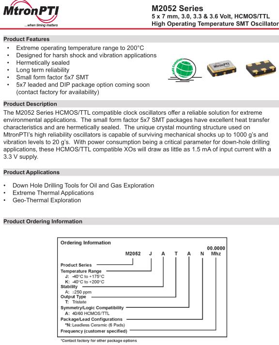 MtronPTI晶振,M2052晶振,M2052JATAN16.0000MHz晶振,小型SMD有源晶振,從最初超大體積到現(xiàn)在的7050mm,6035mm,5032mm,3225mm,2520mm體積,有著翻天覆地的改變,體積的變小也使產(chǎn)品帶來(lái)了更高的穩(wěn)定性能,接縫密封石英晶體振蕩器,精度高,覆蓋頻率范圍寬的特點(diǎn),SMD高速自動(dòng)安裝和高溫回流焊設(shè)計(jì),Optionable待機(jī)輸出三態(tài)輸出功能,電源電壓范圍:1.8V~5V,高穩(wěn)定性,低抖動(dòng),低功耗,主要應(yīng)用領(lǐng)域:無(wú)線通訊,高端智能手機(jī),平板筆記本W(wǎng)LAN,藍(lán)牙,數(shù)碼相機(jī),DSL和其他IT產(chǎn)品的晶振應(yīng)用,三態(tài)功能,PC和LCDM等高端數(shù)碼領(lǐng)域,符合RoHS/無(wú)鉛.