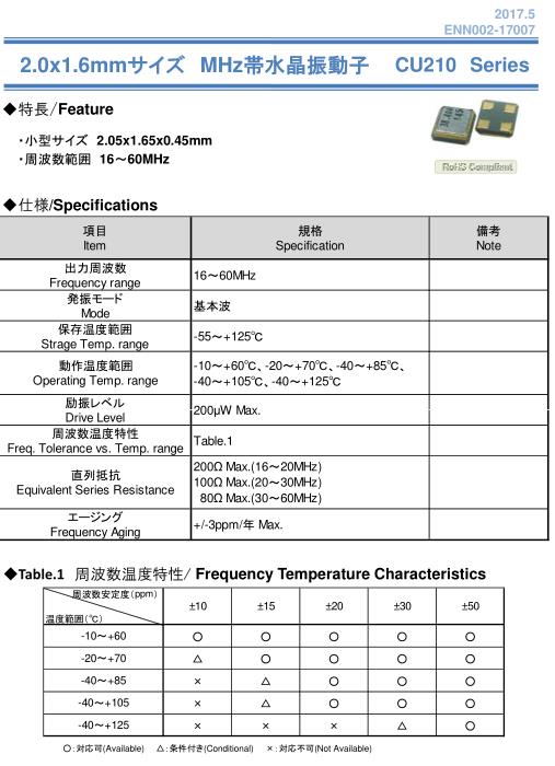 周波數(shù)溫度特性 Freq. Tolerance vs. Temp. range |