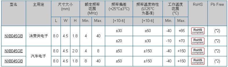 | 標(biāo)準(zhǔn)頻率 (L×W×H : mm) | 8.0×4.5×1.8 | 8.0×4.5×1.8 | |