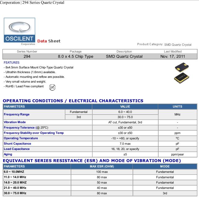 Oscilent晶振擁有頂尖的頻率元件制造技術,Oscilent Crystal公司主打的石英晶體,有源晶振,陶瓷諧振器和聲表濾波器在市場上非常受歡迎,每一顆Oscilent貼片晶振都是精品.Oscilent晶振,294-10.0M-20GR-TR晶振,無源貼片晶振.