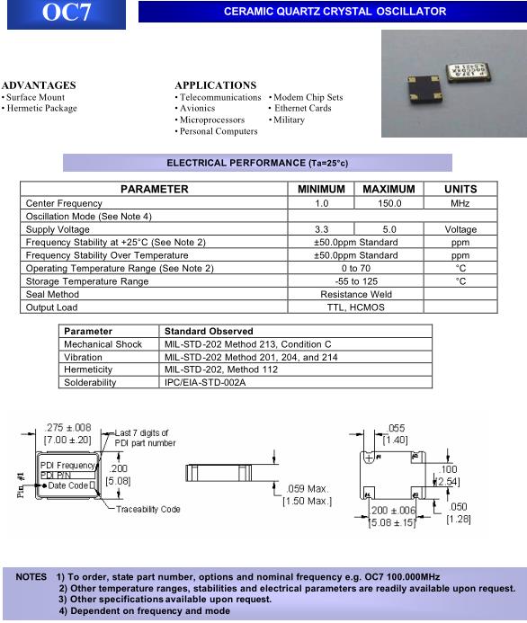 PDI晶振,OC7晶振,石英晶體振蕩器,貼片晶振本身體積小,超薄型石英晶體振蕩器,特別適用于有目前高速發展的高端電子數碼產品,因為晶振本身小型化需求的市場領域,小型,薄型是對應陶瓷振蕩器(偏差大)和普通的石英晶體振蕩器(偏差小)的中間領域的一種性價比較出色的產品.產品廣泛用于筆記本電腦,無線電話,衛星導航SSD,USB,Blu-ray等用途,符合無鉛焊接的高溫回流焊曲線特性.