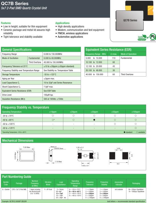 | General Specifications-QANTEK晶振 | QC7B晶振 | |