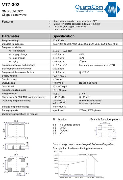 | Standard frequencies | 10.0, 12.8, 16.384, 19.2, 20.0, 24.0, 25.0, 26.0, 38.4 & 40.0 MHz |