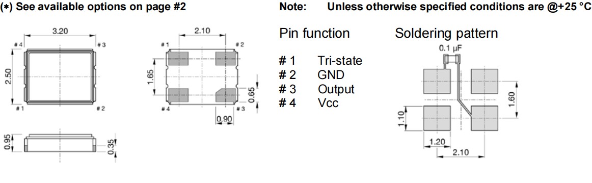 XO32P-H33-NN1u25-100.000MHz,3225mm,QuartzCom高可靠晶振,XO32P,低抖動晶振,尺寸圖