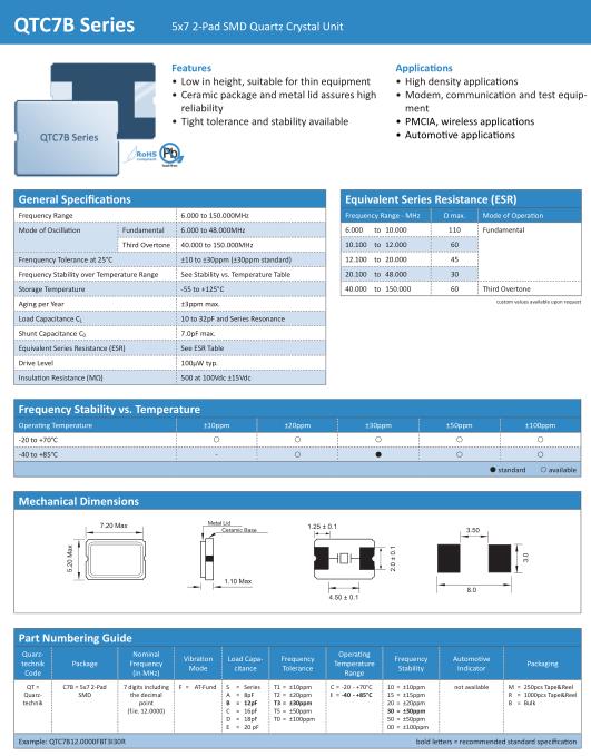 | Mode of Oscillation | Fundamental | 6.000 to 48.000MHz |