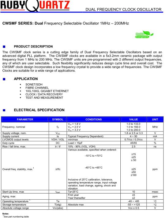 Rubyquartz晶振,CWSMF晶振,CWSMF243TSH0-12.000晶振,5032mm體積的石英晶體振蕩器,有源晶振,該產(chǎn)品可驅動2.5V的溫補晶振,壓控晶振,VC-TCXO晶體振蕩器產(chǎn)品,電源電壓的低電耗型,編帶包裝方式,可對應自動高速貼片機自動焊接,及IR回流焊接(無鉛對應),為無鉛產(chǎn)品,超小型,質地輕.產(chǎn)品被廣泛應用到集成電路,程控交換系統(tǒng),無線發(fā)射基站.