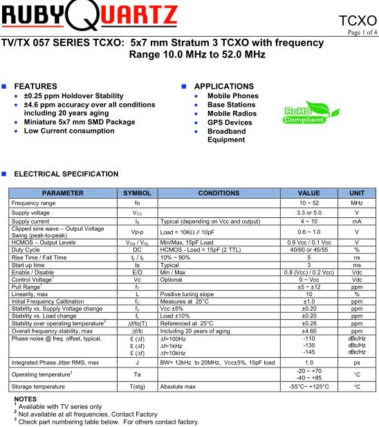 Rubyquartz晶振,TV057晶振,TV057A-D3-0.28-26.000-3-TR晶振,小型SMD有源晶振,從最初超大體積到現在的7050mm,6035mm,5032mm,3225mm,2520mm體積,有著翻天覆地的改變,體積的變小也使產品帶來了更高的穩定性能,接縫密封石英晶體振蕩器,精度高,覆蓋頻率范圍寬的特點,SMD高速自動安裝和高溫回流焊設計,Optionable待機輸出三態輸出功能,電源電壓范圍:1.8V~5V,高穩定性,低抖動,低功耗,主要應用領域:無線通訊,高端智能手機,平板筆記本WLAN,藍牙,數碼相機,DSL和其他IT產品的晶振應用,三態功能,PC和LCDM等高端數碼領域,符合RoHS/無鉛.