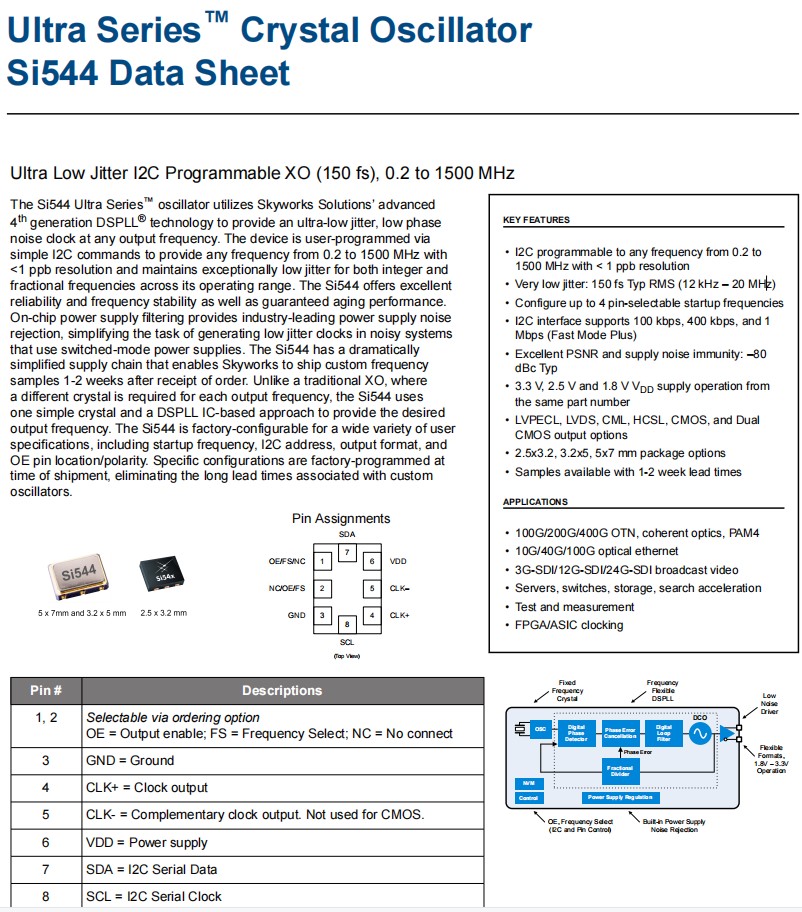 | 544AAAA000126ABG | Skyworks晶振 | Si544 | 200 MHz | LVPECL | 2.5V, 3.3V |