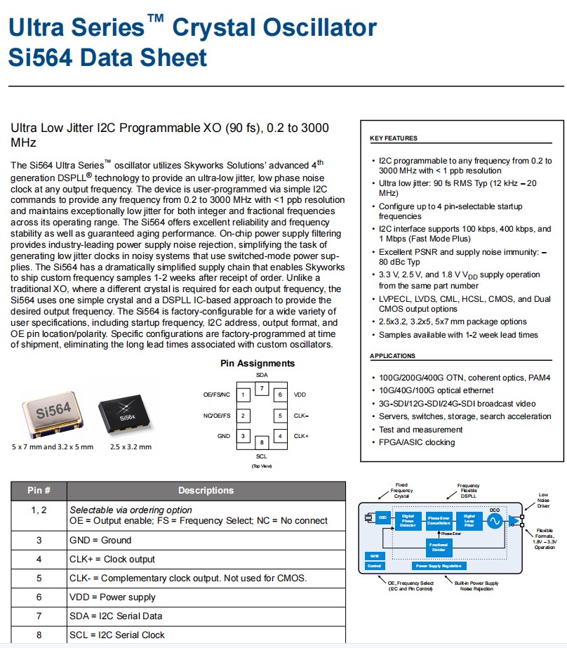 | 564AAAB000798BCG | Skyworks晶振 | Si564 | 1 MHz | LVPECL |