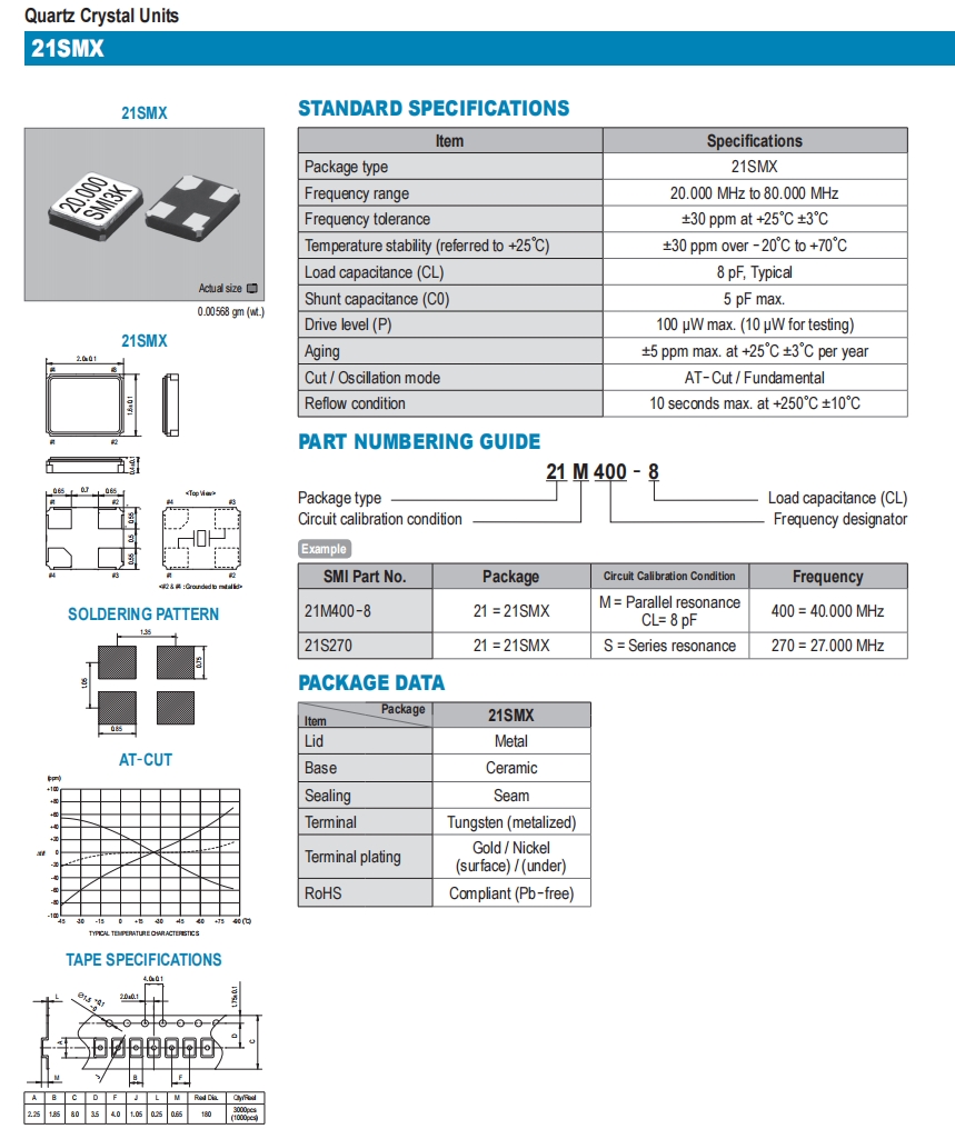 日本SMI晶體\21M250-8\6G無(wú)線(xiàn)晶振\21SMX小體積晶振 參數(shù)表
