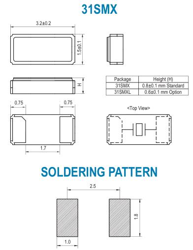 SMI晶振,31SMX晶振,3215mm晶振,32.768K時鐘晶體具有小型,薄型,輕型的貼片晶振表面音叉型晶體振蕩器,產品具有優良的耐熱性,耐環境特性,可發揮晶振優良的電氣特性,符合RoHS規定,滿足無鉛焊接的高溫回流溫度曲線要求,金屬外殼的封裝使得產品在封裝時能發揮比陶瓷振蕩器外殼更好的耐沖擊性.