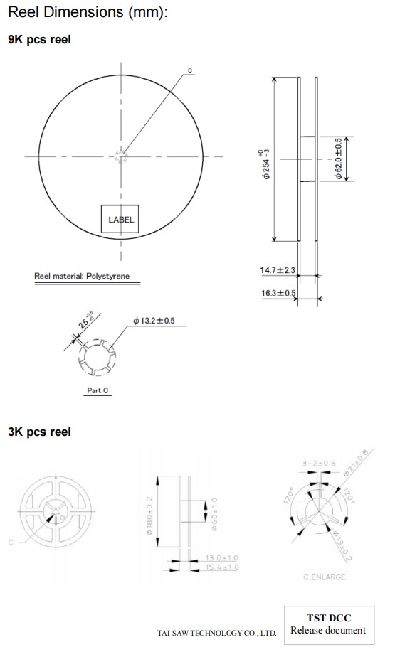 TST無源晶振TZ1006AE,32.768K石英晶體諧振器,3215貼片晶振,尺寸圖